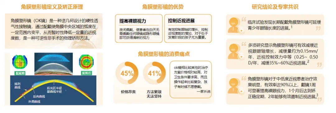 角膜塑形镜作为一种可逆性非手术的物理矫形方法,在延缓儿童青少年近视进展方面,其控制近视的有效性,受到越来越多医生和近视者的青睐。但相对于其他措施,角膜塑形镜价格昂贵、操作复杂、适配性要求高,同时在治疗期间注意规律随诊、预防感染。