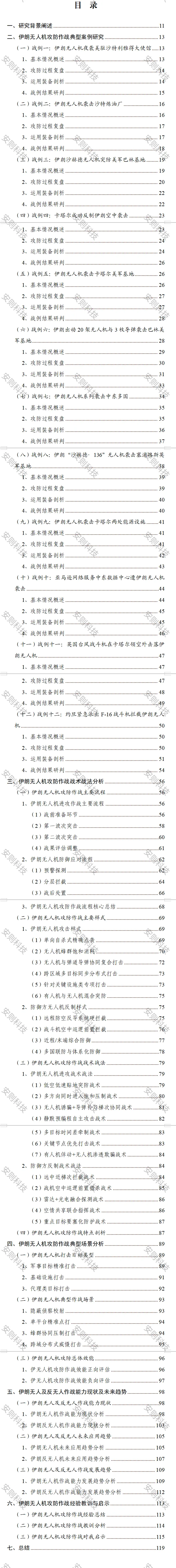 在此基础上,报告深入分析此次冲突中伊朗无人机攻防作战的战术战法,明确其进攻与防御的主要流程、核心样式和关键战术,剖析攻防作战的整体特点;进一步梳理伊朗无人机攻防作战的典型场景,分类探讨其打击目标类型、典型作战场景及总体攻防效能,并进行正向与负向评估。随后,报告研判伊朗无人及反无人作战的能力现状,展望其未来应用与发展趋势。最后,总结伊朗无人机攻防作战的经验教训,提炼对我国相关领域发展的启示,并对全文研究内容进行总结概括。