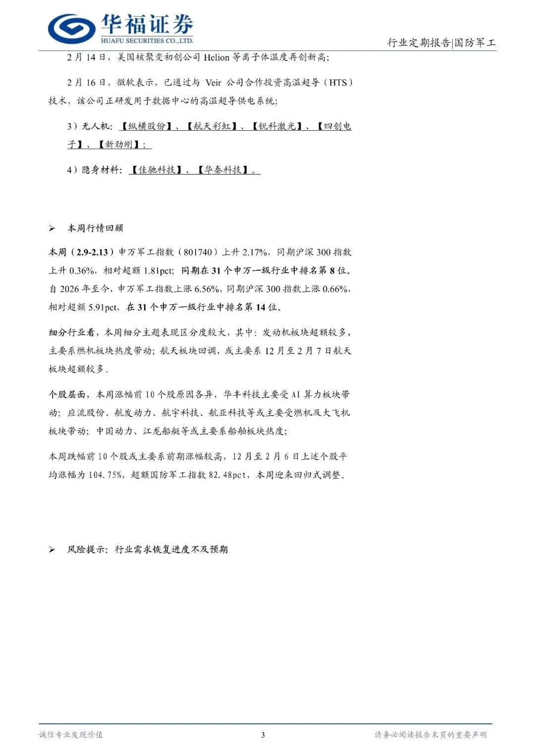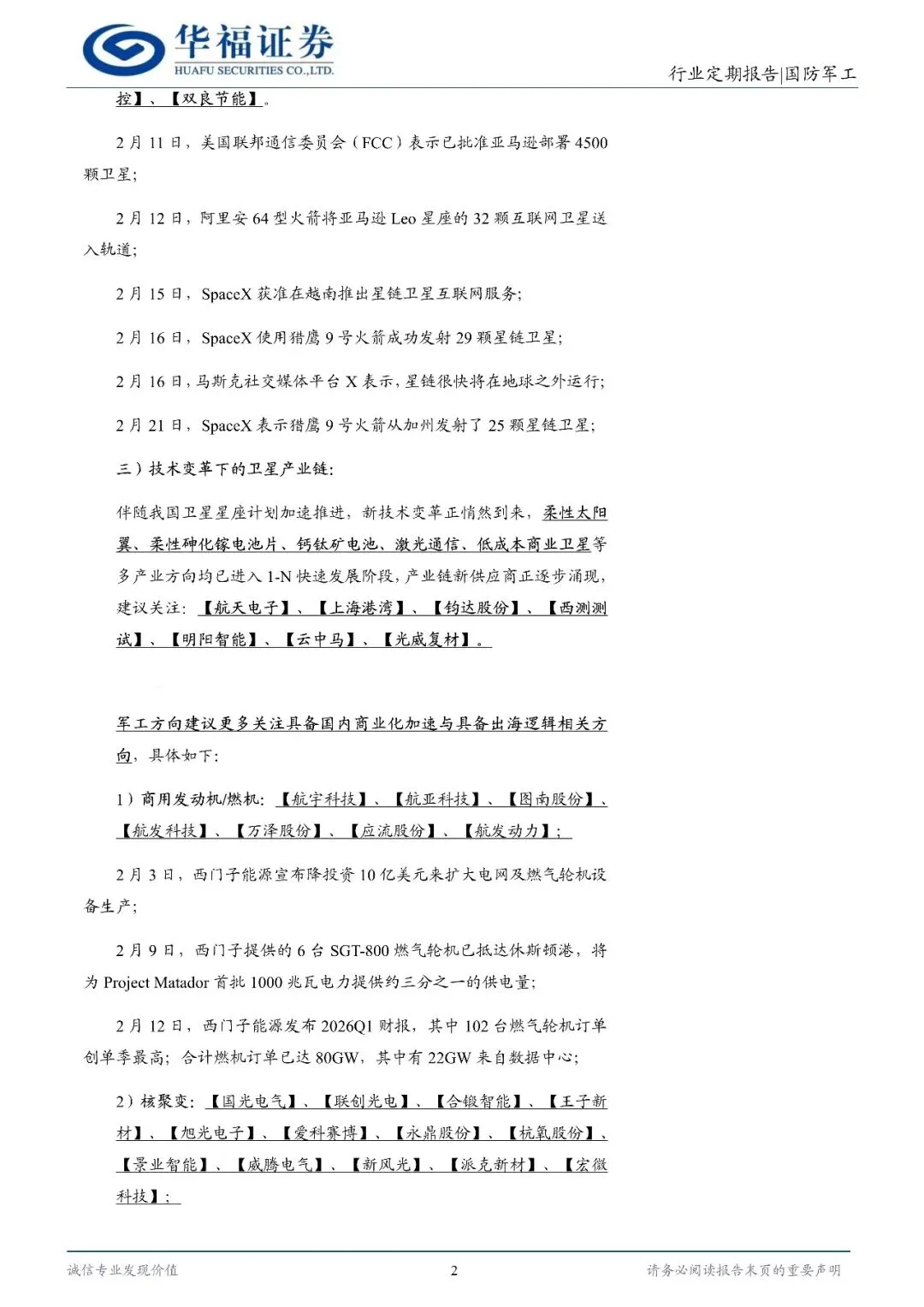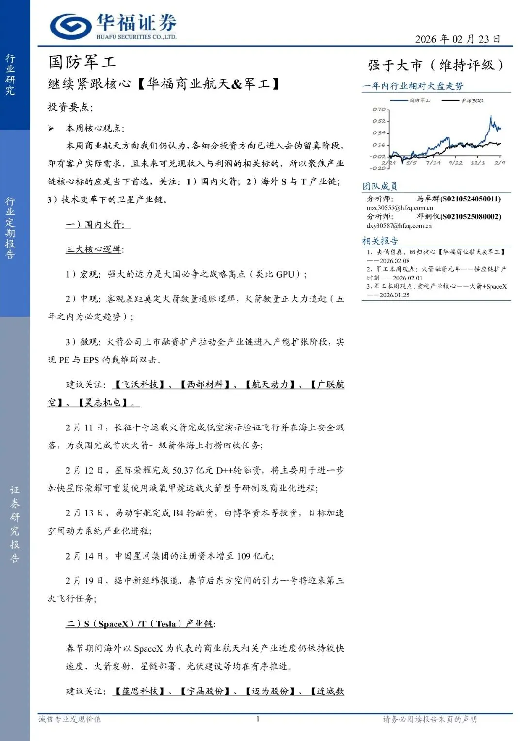 国防军工行业定期报告:继续紧跟核心【华福商业航天%26军工】-260223-华福证券-16页
