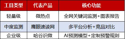 哈谷传媒倾力打造的哈谷24小时舆情监测软件即为此类工具的代表之一,它可以提供24小时实时监测、定制化预警等服务,助力餐饮企业精准捕捉舆情风险。该款软件之外,市场还有多款危机公关舆情工具满足多元化需求。以下是《餐饮界》整理的部分AI工具代表列表,仅供参考。
