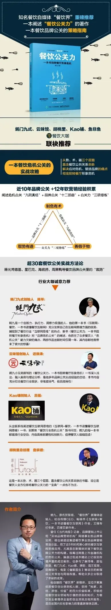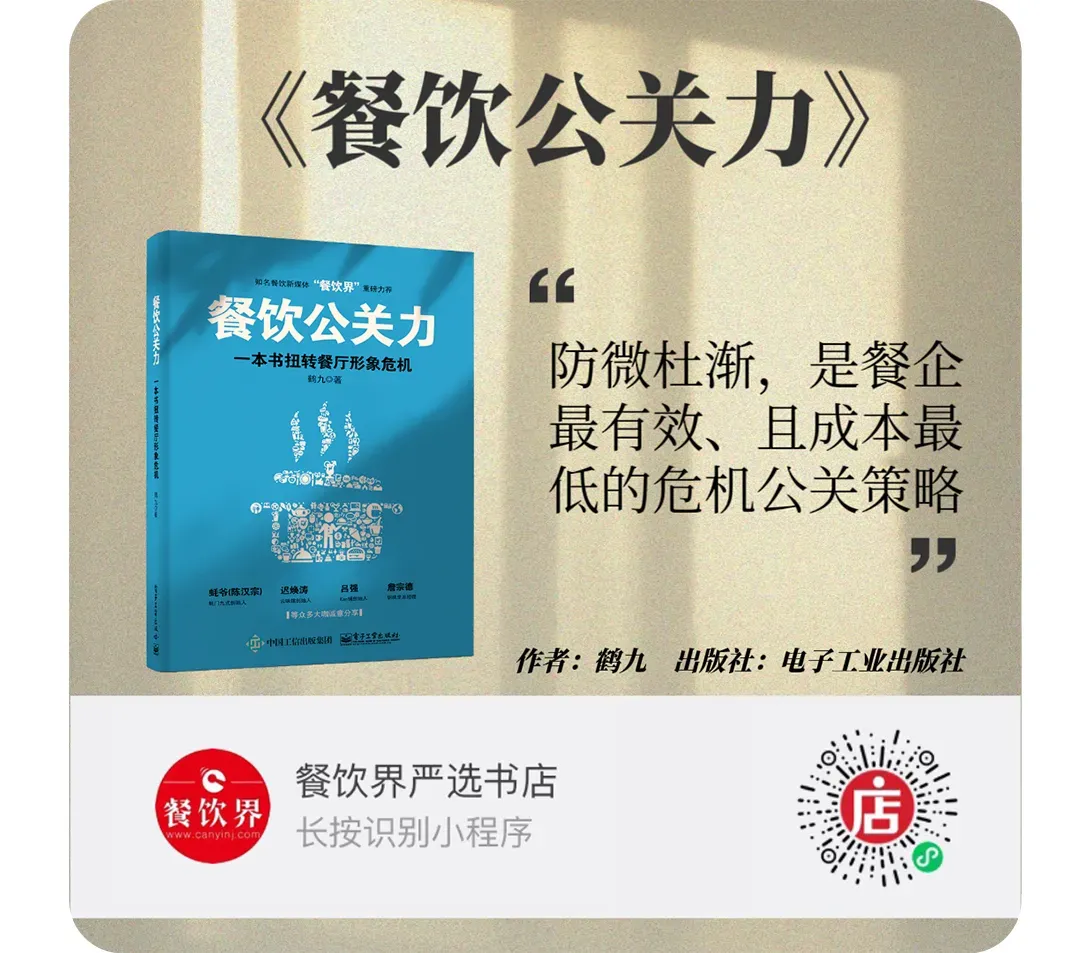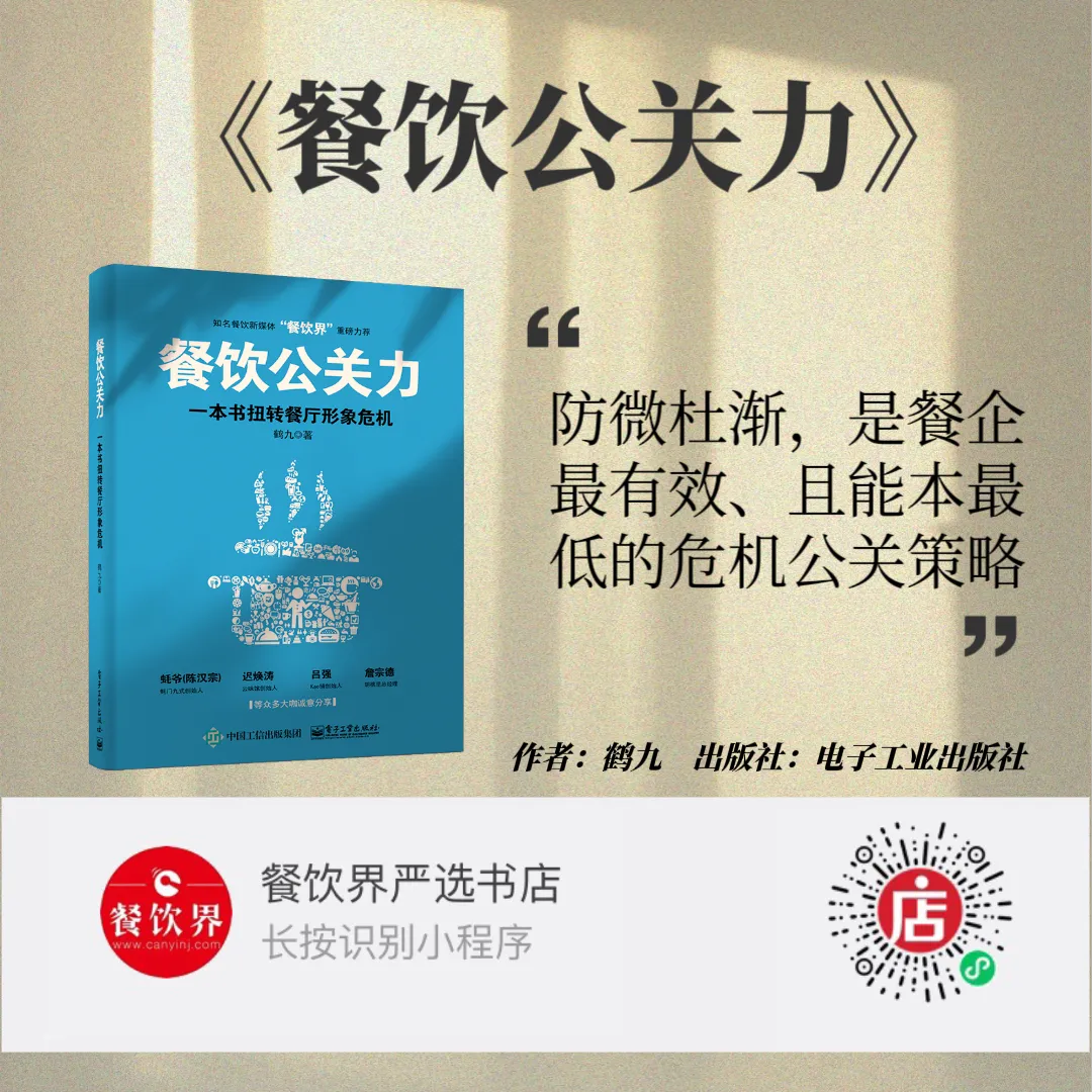“一本书扭转餐厅形象危机”,更多危机公关“秘笈”尽在鹤九著作《餐饮公关力》↓