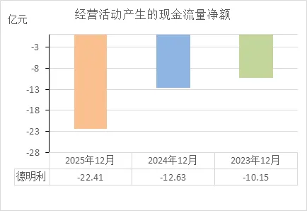 卖得多,亏得也多:营收涨到107亿的同时,经营现金流净流出22亿(卖货没收回现金,反而倒贴)。