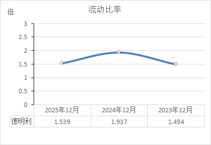 传统标准:流动比率>2算安全,1.5左右算及格。德明利1.539倍,勉强及格。