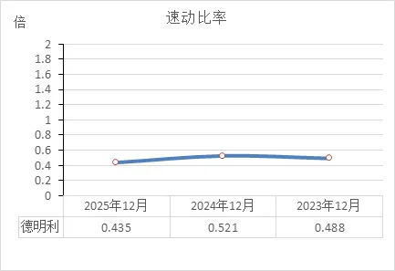 安全线常识:速动比率通常要大于1才说明手头变现快的资产能覆盖短期债。德明利这三年最高才0.52,意味着即使把能快速变现的资产(现金、应收款)全拿去还债,也最多只能还一半。