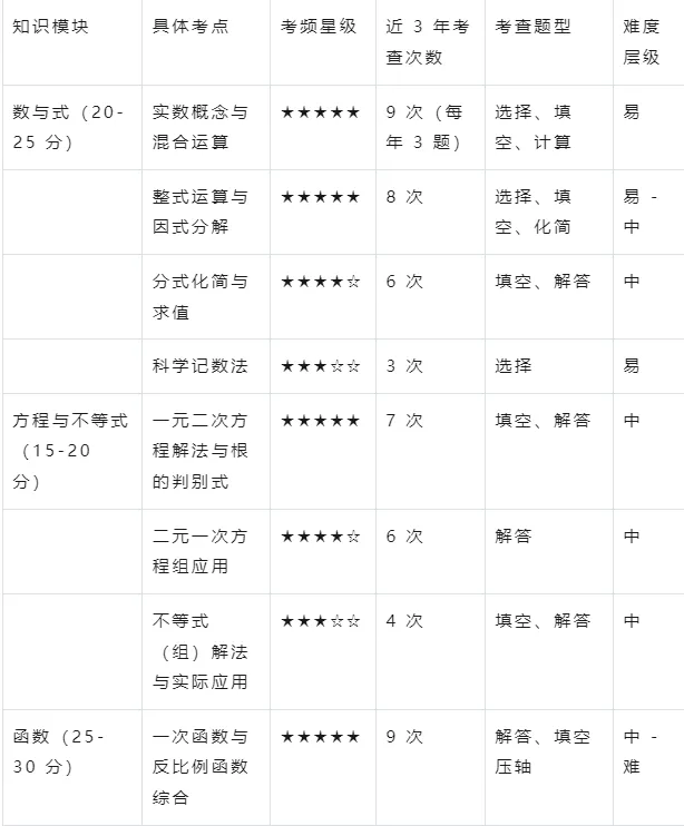 具体知识点分布(基于 2025 年南昌中考数学考点统计):