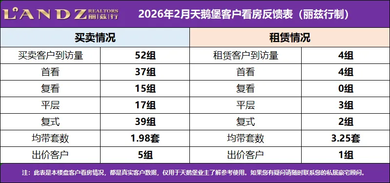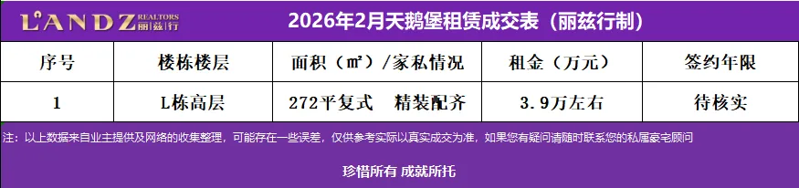丽兹Tips:2026年2月天鹅堡租赁成交分析