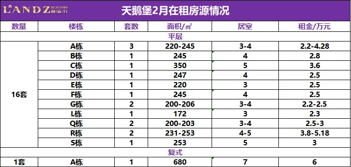 天鹅堡挂牌在租房源情况↓