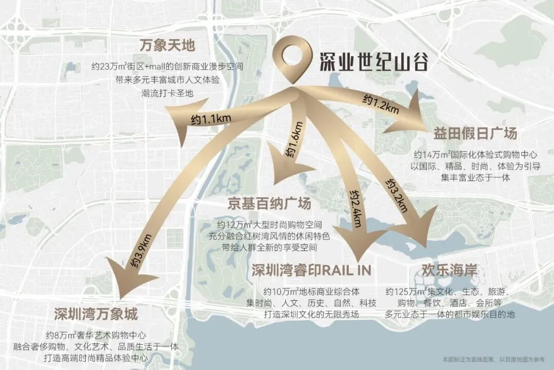 ·六大高端商圈环伺:位于深圳大型高端商业集中地,周边商圈包括益田假日、万象天地、京基百纳、深圳湾睿印、欢乐海岸、深圳湾万象城等商业。