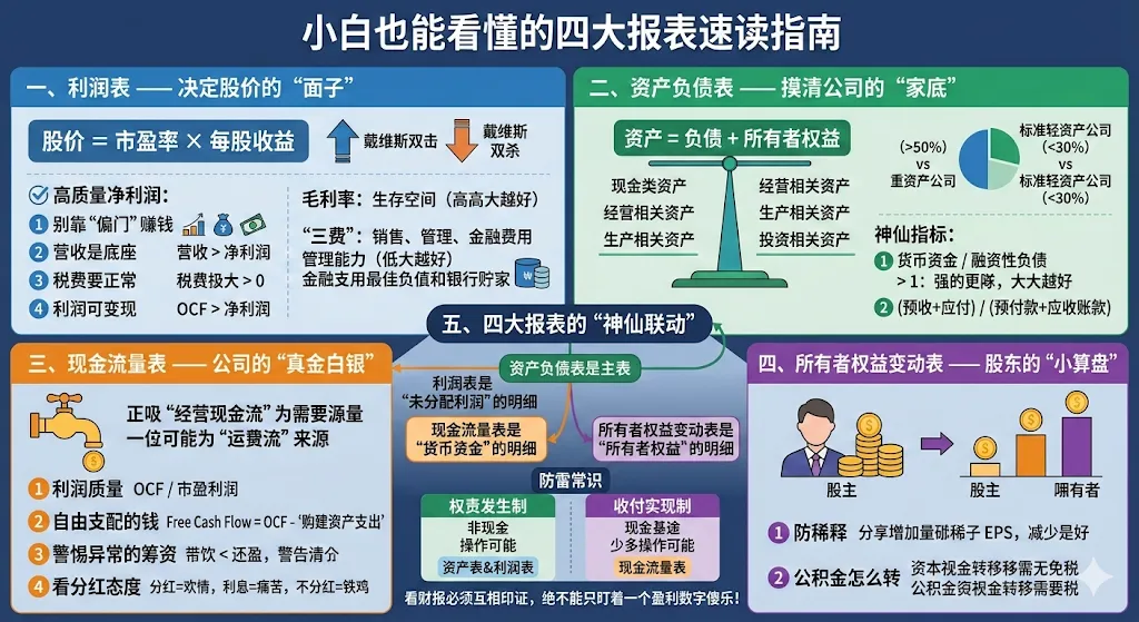 财报就像上市公司的“体检报告”,不看报告就闭眼满仓,和重金买盲盒有啥区别?今天咱们速刷四大报表,专治各种财报头大!
