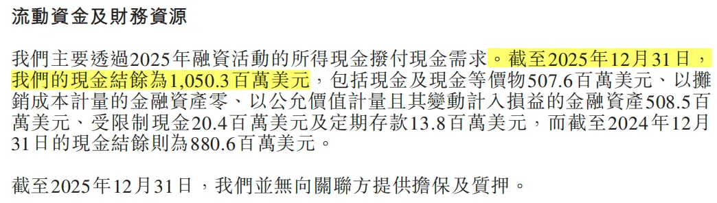 在2025年度业绩电话会议中,MiniMax创始人兼CEO闫俊杰明确提出,公司未来战略将从单一的大模型企业,全面向AI时代的平台型企业演进。该战略升维贴合当前AI行业的发展趋势,亦是公司突破增长瓶颈、构建长期核心竞争力的关键布局。其核心逻辑具有明确的行业前瞻性:互联网时代的平台型企业,核心价值在于成为流量聚合入口,通过流量变现实现商业价值;而AI时代的平台型企业,核心定位是智能范式的定义者与推动者,依托核心技术能力,带动整个行业生态的创新与发展,并享受智能范式升级带来的商业红利,其价值可简化表述为“智能密度×Token吞吐量”——其中,智能密度决定企业技术竞争力,Token吞吐量决定商业化规模,二者协同构成AI平台型企业的核心价值基础。具体来看,MiniMax的平台化转型采取“差异化布局、聚焦核心价值”的发展策略,主动规避通用移动端个人助手(如豆包、ChatGPT)领域的同质化竞争——该领域虽具备流量优势,但存在用户付费意愿偏低、变现难度较大、行业竞争已进入红海等问题;转而将核心资源集中于Agent产品、星野、海螺视频等具备独特价值的业务领域,聚焦编程、办公、多模态创作等垂直场景,通过开放平台联动企业客户与开发者群体,构建“基础模型+应用生态”的完整体系。截至目前,公司开放平台已吸引大量中小企业及开发者入驻,2026年2月新注册用户数达到2025年12月的4倍以上,年度经常性收入(ARR)已突破1.5亿美元,生态构建成效初步显现。该战略布局精准契合当前AI行业“从单一模型竞赛转向生态综合竞赛”的发展趋势,既充分发挥了公司在全模态技术、Agent应用领域的核心优势,也为公司长期增长打开了广阔空间,有望在行业竞争中抢占生态竞争制高点。4. 资金储备充足,短期无流动性压力,为长期发展提供坚实资金保障