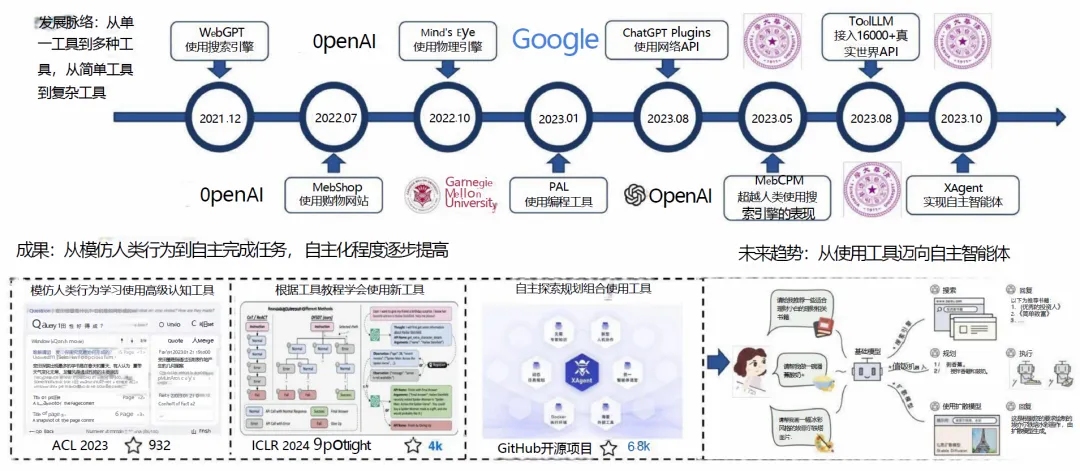 ▌从工具使用迈向完全自主智能体:未来智能体的自主化程度将持续提升,从当前的模仿人类使用工具、按预设流程执行任务,逐步进化为可根据教程自主学习新工具、自主探索规划组合使用工具、自主完成复杂开放域任务的完全自主智能体,同时反思与自我优化能力将成为智能体的核心标配。