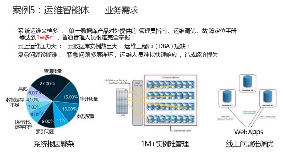 运维智能体聚焦云数据库与 IT 系统运维场景,解决运维文档多、云上运维压力大、复杂问题诊断难的核心痛点,打造智能化的运维助手,核心能力与落地成果如下: