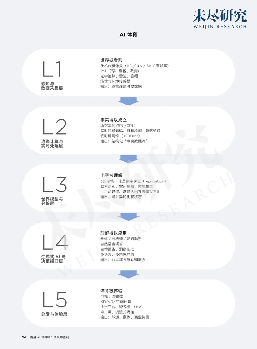 此外,文章援引报告提出的“AI世界杯十大前沿创新技术”,明确认为中国将引领这一数据与AI驱动的新方向。这包括着时刻出圈的AI预测、AI眼镜、虚拟现实、联动电竞和虚拟藏品的web3体育、AI短视频、带来场内视角的AI裁判执法、实时翻译与解说、场馆增强技术,以及足球“世界模型”和流媒体对电视的全面超越。
