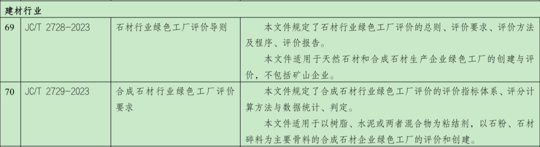 此外,由中国石材协会负责起草的《天然石材行业绿色工厂评价要求》日前也已通过专家评审,并将在完成相关流程后上报工信部。随着绿色工厂系列标准的发布实施,行业绿色高质量发展工作将加快推进,行业企业高质量发展将迎来更多新机遇。