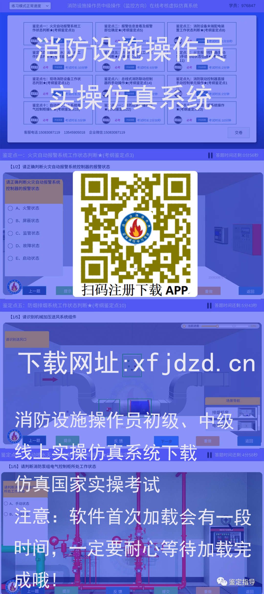 在缴费截止后(约为每月12日前后)考生会收到消防行业指导中心发送的选择鉴定时间的短信提醒,因手机分辨率不同会导致预选不成功,请收到短信后及时在电脑上登录考试系统选择考试时间,预选不成功或不在规定时间内预选的人员,系统将自动分配考试时间。预选时间不一定是最终的考试时间,具体考试时间和技能考核方式以准考证为准。请在每月15日后电脑登录考试系统打印准考证,请持身份证原件和准考证参加考试,证件不齐全的不得进入考场。