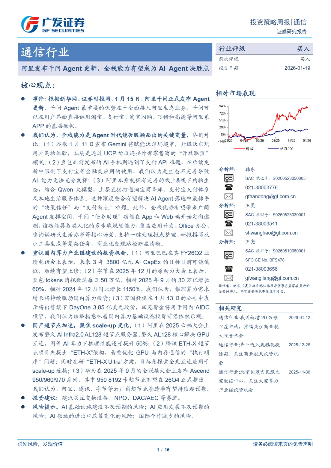 行业研究报告-《通信行业阿里发布千问Agent更新全栈能力有望成为AIAgent决胜点》