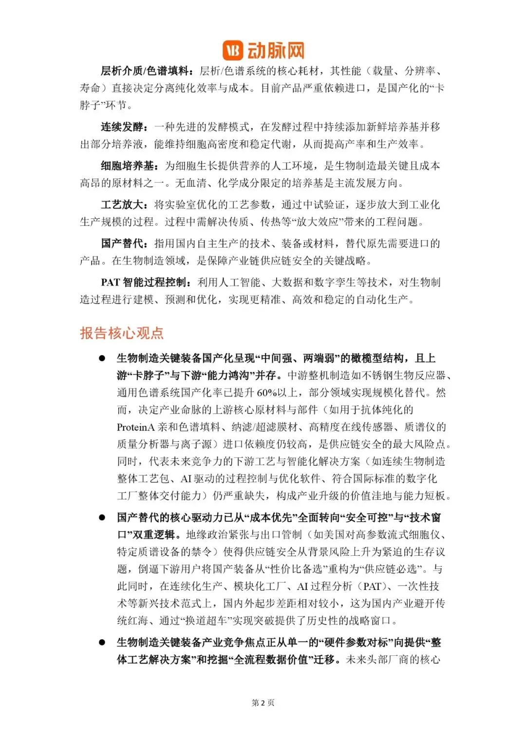 - 产业链自主可控是核心目标:在生物制造产业链中,上游核心材料和部件仍高度依赖进口,是国产化进程中“最难啃的骨头”。