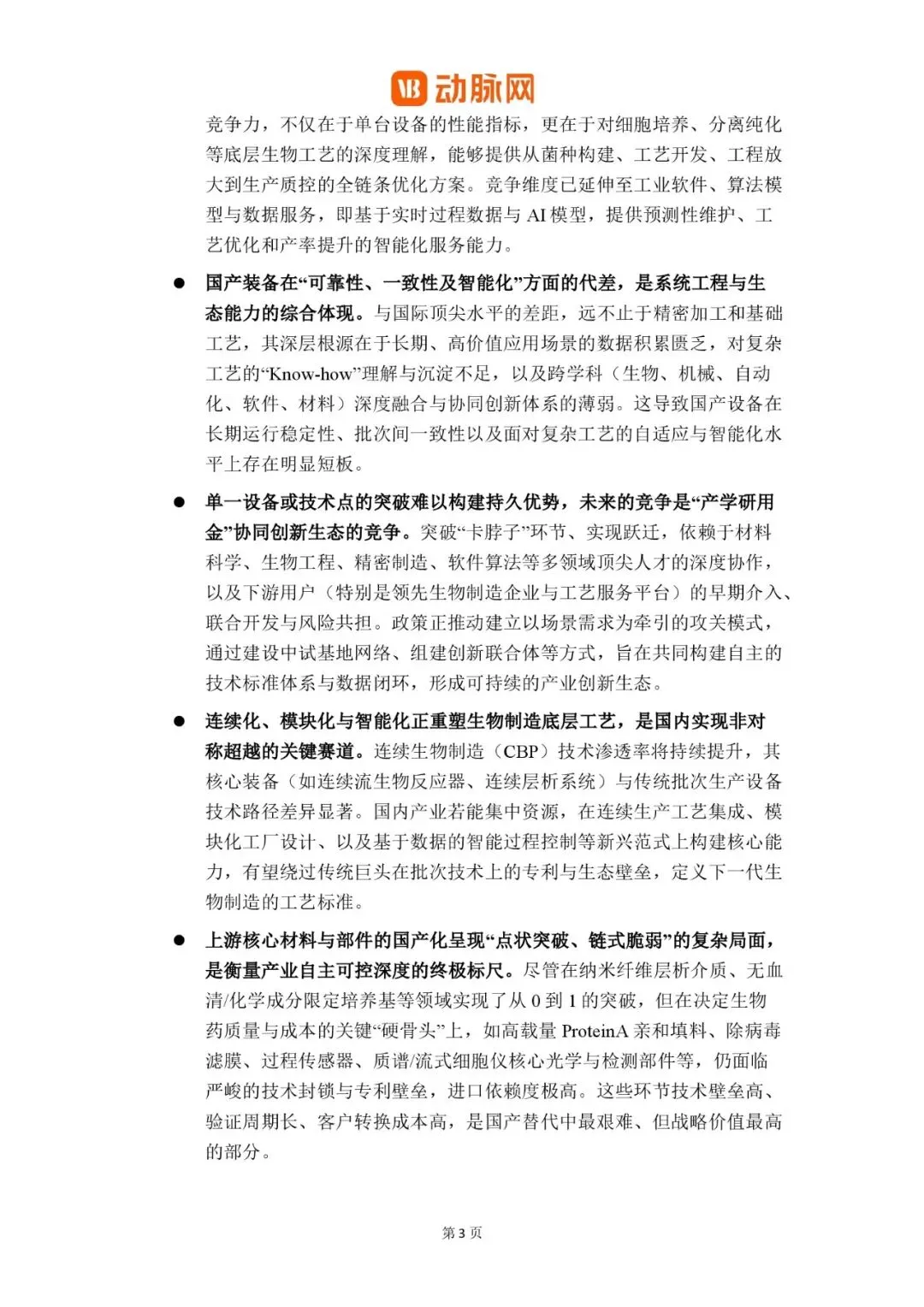 - 底层“根技术”挑战:如核心传感器、质谱/流式细胞仪关键部件、层析介质等仍面临技术封锁。