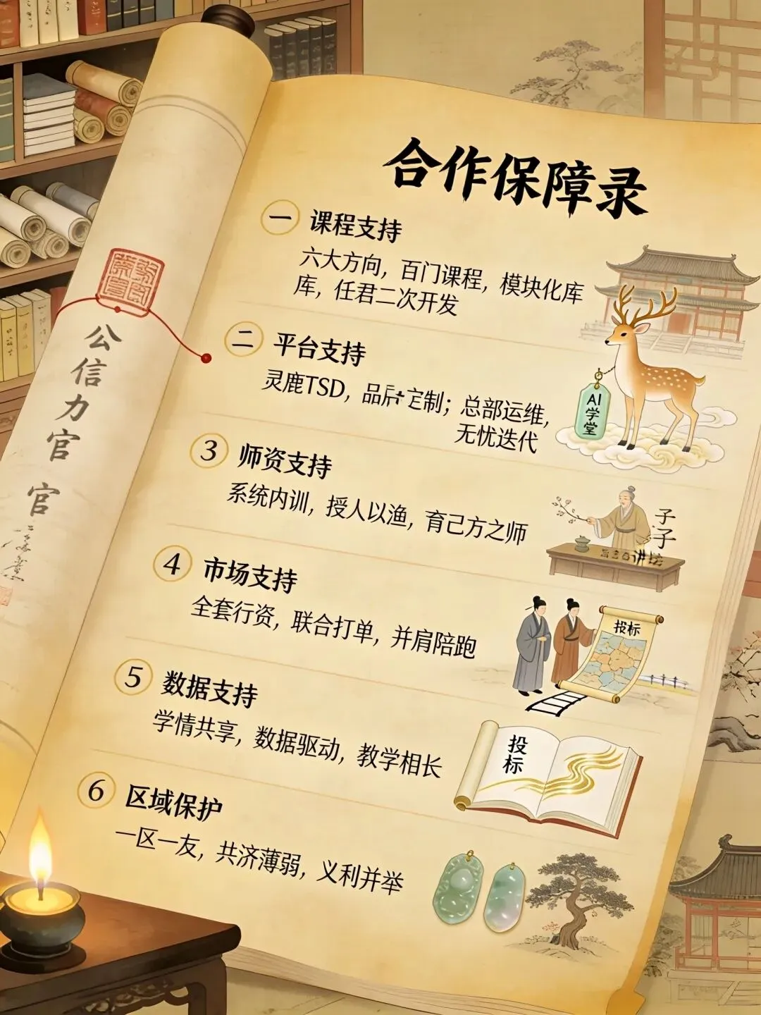 3. 落地分润:灵鹿智科提供全部资质、课程、讲师与平台支持,合作伙伴负责本地落地,实现收益共享。