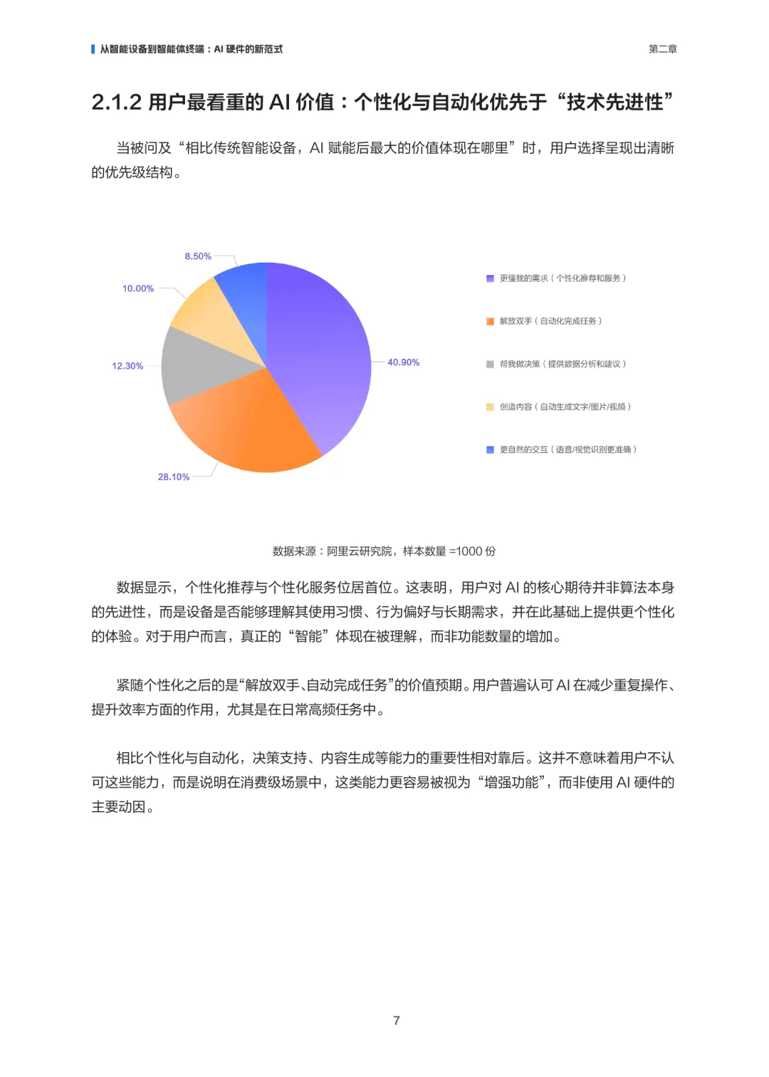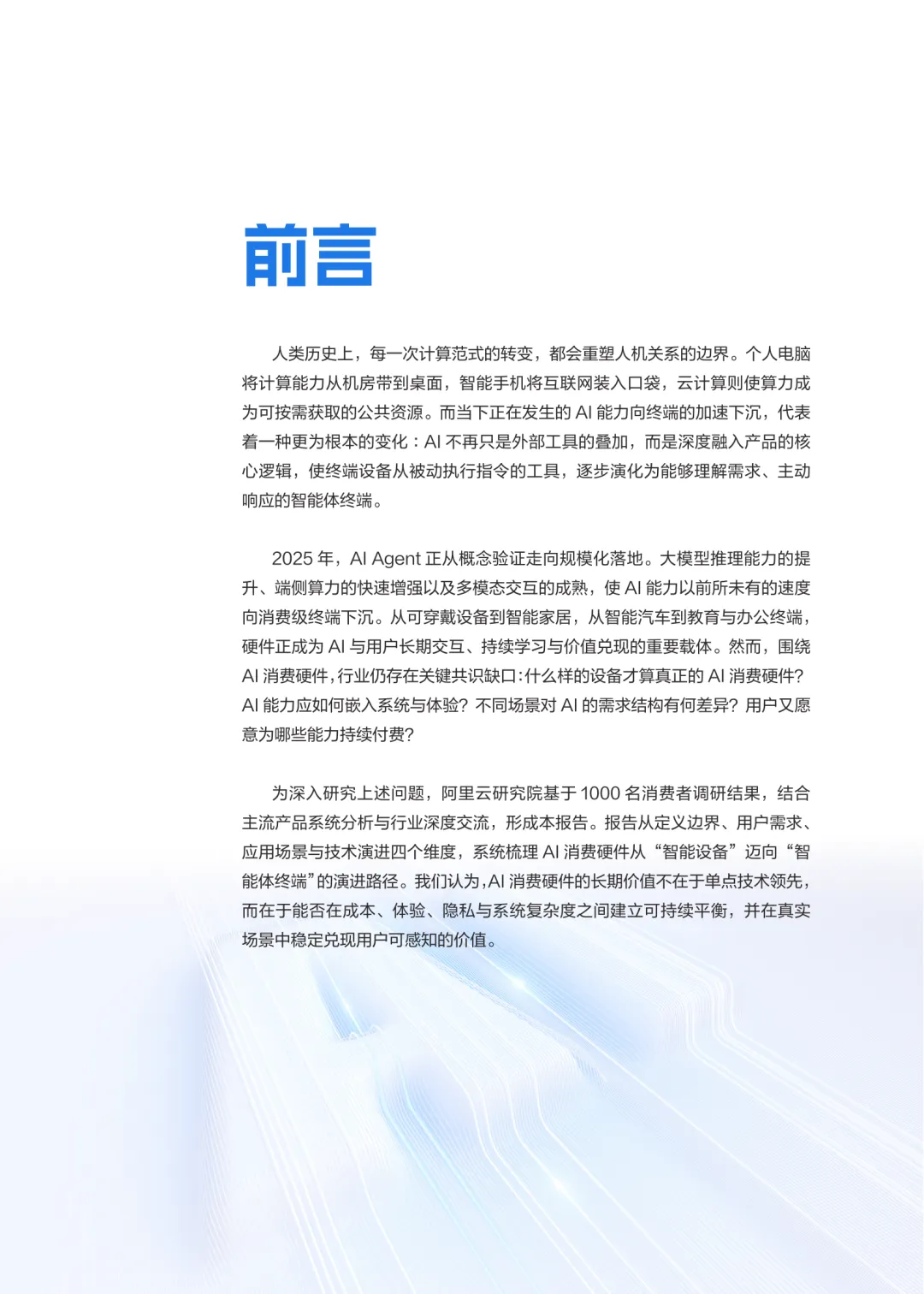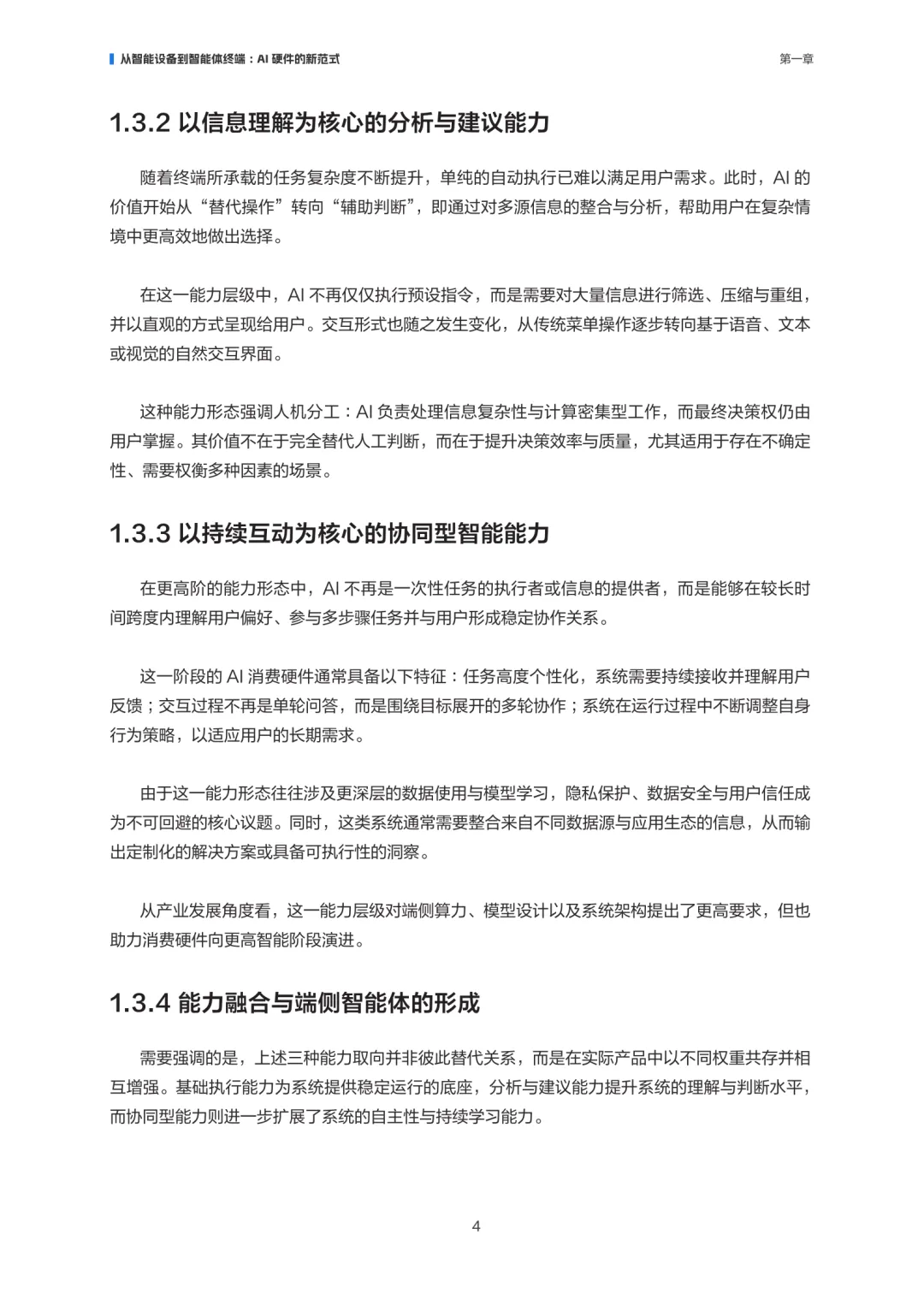 AI消费硬件正经历从“联网设备”向“端侧智能体”的范式转变。这类设备以人工智能为核心驱动,深度嵌入感知、理解、推理与持续学习能力,使终端不再只是执行指令的工具,而是具备自主性和交互能力的智能体。其核心特征在于AI能力贯穿系统架构、交互方式与价值创造过程,对用户体验产生持续影响。在技术层面,嵌入式AI为终端提供本地计算与推理能力,降低时延、增强隐私保护,并确保离线环境下的基本功能。随着模型压缩与算力提升,端侧生成式AI正在拓展应用边界,使设备具备更复杂的理解与生成能力,推动AI消费硬件从被动执行转向主动响应。AI消费硬件的演进不仅依赖技术突破,还需在成本、体验、隐私与系统复杂度之间建立平衡,才能在真实场景中持续兑现用户可感知的价值。