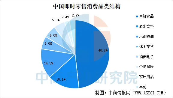 目前即时零售消费品类已经覆盖生鲜食品、酒水饮料、米面粮油、休闲食品、消费电子、个护健康、家居用品等,满足居民日常生活工作社交所需。目前,生鲜食品占比最高达48.2%,酒水饮料、米面粮油占比超10%,分别为15.1%、14.3%。休闲零食、消费电子、个护健康占比超5%,分别为6.0%、6.0%、5.3%。