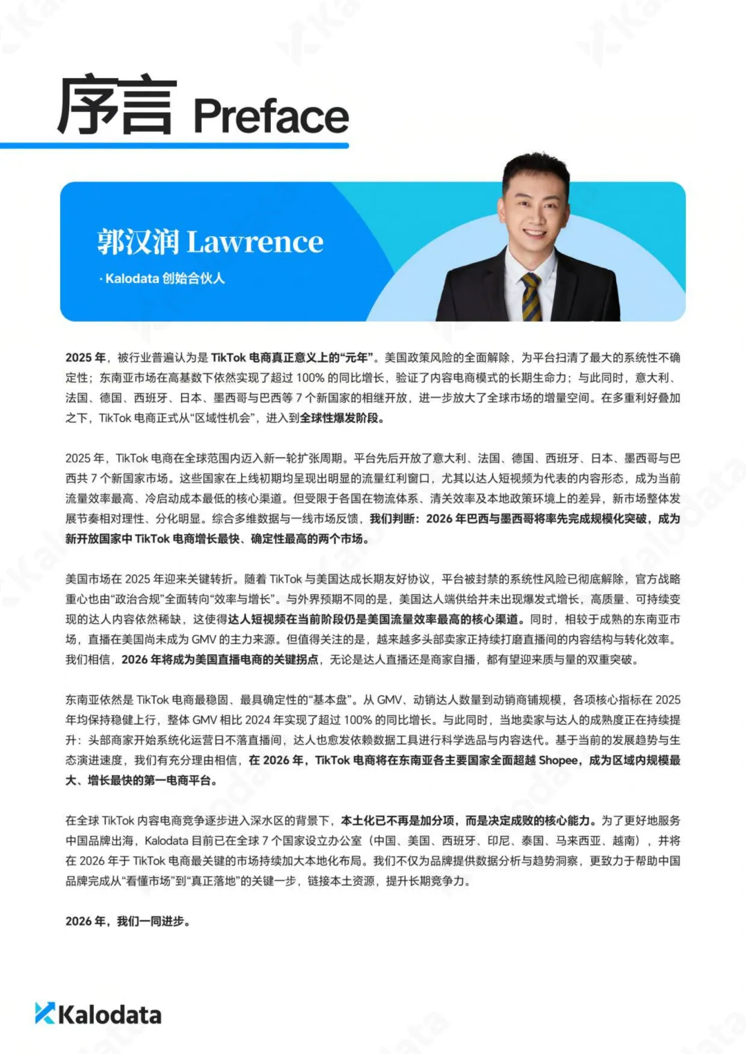 由全球领先的数据智能服务商Kalodata重磅发布的《2026 TikTok电商白皮书》,基于对2025年全年(2025.01-2025.12)全球15个核心市场的海量数据追踪,为我们揭开了一个惊人的真相:TikTok电商的“草莽时代”已彻底终结,2026年将是“专业主义”与“本土化深耕”的分水岭。