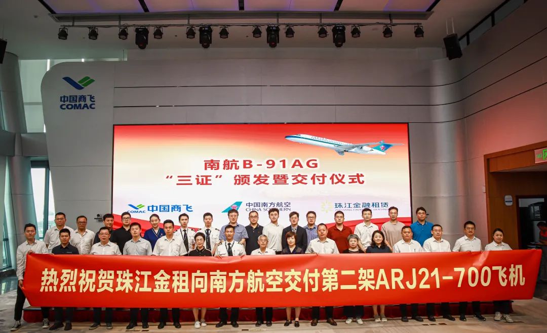 8月22日,珠江金融租赁有限公司ARJ21-700国产飞机交付仪式在南昌顺利举行,珠江金租、南方航空、中国商飞的领导和嘉宾共同出席了交付仪式。