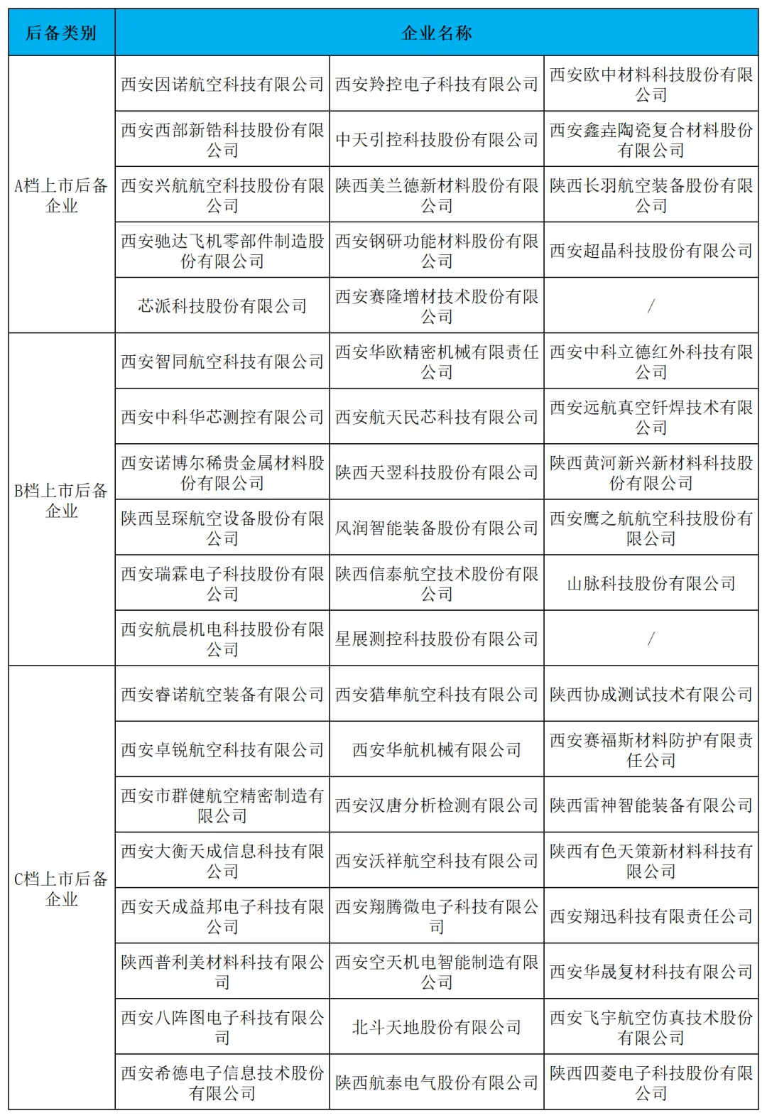表25:各类西安无人机相关企业上市后备企业名单