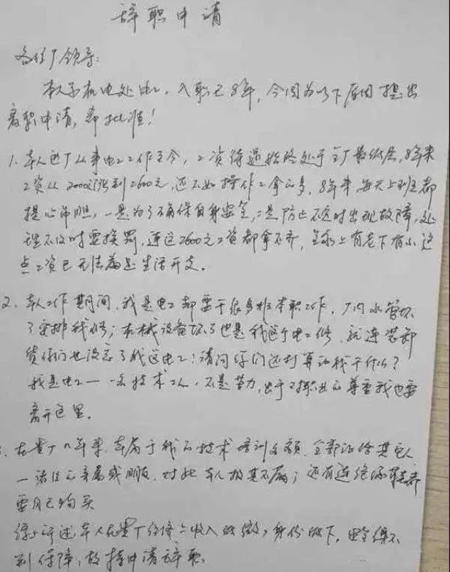 一张来自工厂老电工的辞职信火遍网络,引发打工人热烈讨论 ! !