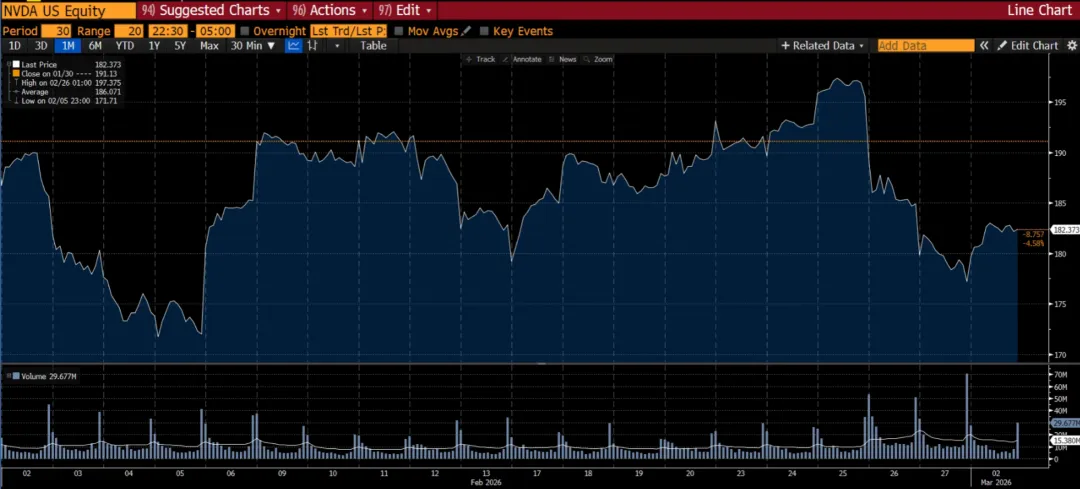 图表:英伟达近一个月的股价表现,业绩后快速下滑