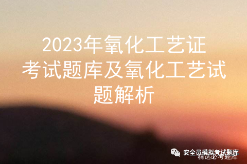 2023年氧化工艺证考试题库及氧化工艺试题解析是安全生产模拟考试一点通结合(安监局)特种作业人员操作证考试大纲和(质检局)特种设备作业人员上岗证考试大纲随机出的氧化工艺在线模拟考试题练习。其中包含氧化工艺证复审考试题库答案解析及氧化工艺证新训考试题库答案解析。2023年氧化工艺证考试题库及氧化工艺试题解析符合考试新大纲。通过考试前训练确保学员学习后能顺利通过考试。