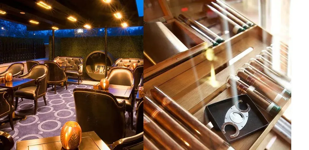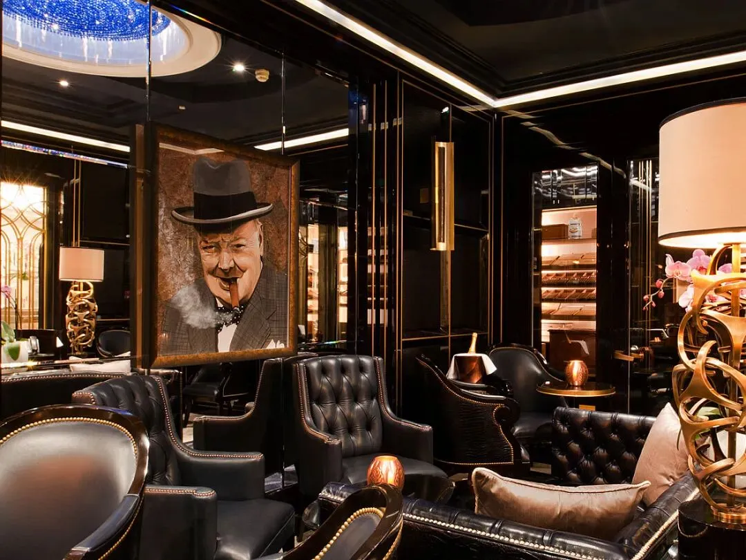 空间美学:独立私密宴会厅,配备手工水晶杯、骨瓷餐具,以及智能环境调控系统,确保恒温恒湿的雪茄品鉴环境。