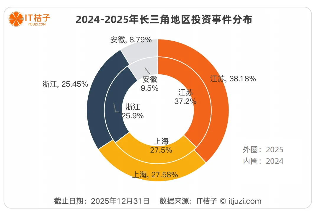 江苏以1625起投资事件,首次超越北上深,成为全国创投最活跃的省份。