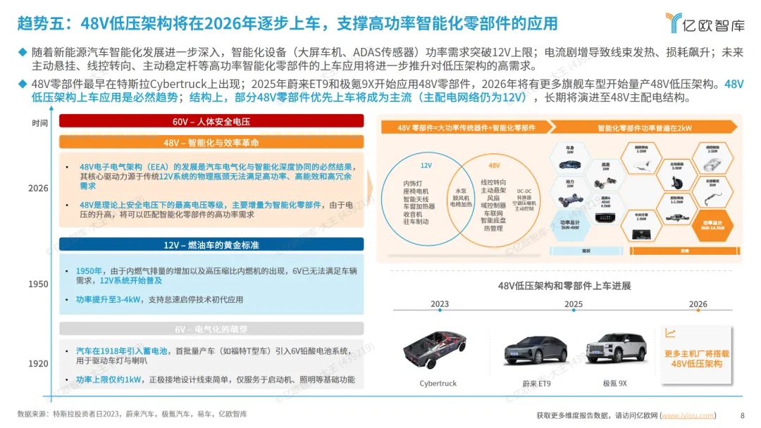 本篇行业报告可以通过扫下方知识星球下载。39元就可以下载星球所有报告。免费提供报告查找服务。随着科技的飞速发展,汽车行业正经历着前所未有的变革。电动化、智能化和自动驾驶技术的进步,预示着未来汽车将更加环保、便捷和安全。2026年,我们将见证这些技术的融合,为驾驶者带来全新的体验。首先,电动化技术的发展正推动汽车行业向更清洁、更高效的能源解决方案转型。48V轻混系统的应用,不仅提高了燃油效率,还为车辆提供了更好的动力性能。预计到2026年,48V系统将成为主流,与12V系统共同工作,为车辆提供更稳定的能量供应。此外,电动汽车的续航里程和充电速度也在不断提升,使得电动车更加实用。智能化技术的应用,让汽车变得更加“聪明”。AI技术在汽车领域的应用,使得车辆能够更好地理解驾驶者的意图,提供更加个性化的服务。例如,ADAS(高级驾驶辅助系统)的普及,使得车辆能够在复杂的交通环境中,为驾驶者提供辅助,减少事故的发生。自动驾驶技术的进步,是未来汽车技术发展的另一个重要方向。随着L3级别自动驾驶技术的成熟,车辆将能够在特定条件下实现自主驾驶。预计到2026年,我们将看到更多的L3级别自动驾驶车辆上路。同时,L4级别自动驾驶技术也在快速发展,预计在未来几年内,我们将看到无需人工干预的完全自动驾驶车辆——Robotaxi,为公众提供出行服务。这些技术的发展,不仅将改变我们的出行方式,还将对城市交通、环境和社会经济产生深远影响。例如,自动驾驶车辆的普及将减少交通事故,提高道路使用效率,减少拥堵。同时,电动化技术的发展将有助于减少温室气体排放,对抗全球气候变化。总之,未来汽车技术的发展将更加注重电动化、智能化和自动驾驶技术的融合。这不仅将为驾驶者带来更加舒适、安全的驾驶体验,也将为社会带来更加环保、高效的交通解决方案。随着技术的不断进步,我们有理由相信,未来的汽车将更加智能、更加环保,为人类社会的发展做出更大的贡献。免责声明:以上分享报告为公开合法渠道获得,内容大部分来源于网络,版权归原作者所有,如有侵权,请及时与我们联系,我们将第一时间保障您的权益。推荐内容仅供参考学习,不构成投资建议。