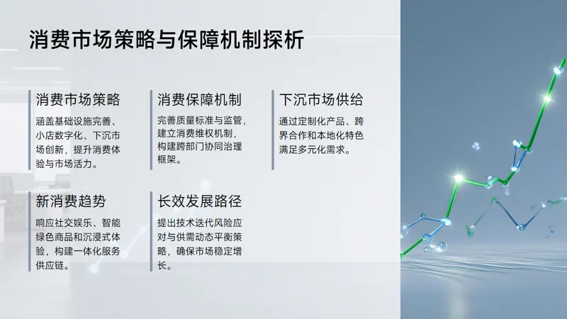 本文主要介绍了当前消费市场的发展策略与保障机制,涵盖消费基础设施完善、传统小店数字化改造、下沉市场供给模式创新、消费环境与制度保障、供应链协同增效、新消费趋势响应以及长效发展路径等多个方面。文章强调通过加强城乡消费设施互联互通、推动小店线上线下融合及智能化升级,以提升消费体验与市场活力。同时,文章还分析了如何通过定制化产品、跨界合作和本地化特色供给满足下沉市场多元化需求。在制度层面,文章探讨了质量标准与监管体系的完善、消费维权与信息保护机制的建立,以及跨部门协同治理框架的构建。此外,文章还展望了产业链数智化转型、一体化服务供应链构建以及社交娱乐、智能绿色商品和沉浸式体验等新消费趋势的响应机制,最后提出了技术迭代风险应对与供需动态平衡等长效发展策略。