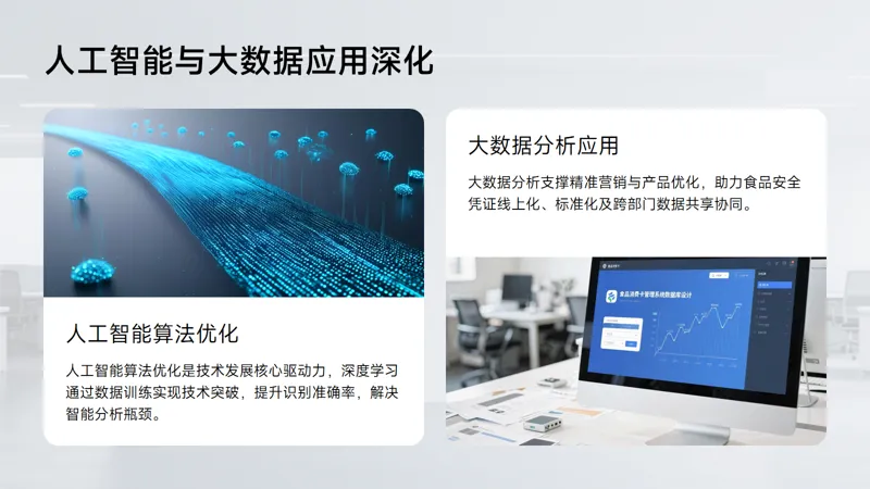 大数据分析应用为精准营销与产品优化提供关键支撑。通过收集、整理和分析海量数据,可深入挖掘用户行为与需求偏好信息。例如,在食品安全管理领域,食材采购涉及检测报告、检疫合格证明、物流温控记录等多类纸质凭证,存在查验不便、存档困难、追溯不易等问题。推动食品安全凭证的线上化、标准化,可实现生产、检测、物流、验收等环节信息可查、一键调阅,逐步建立跨部门食品安全数据共享与协同机制,做到来源可溯、去向可追。