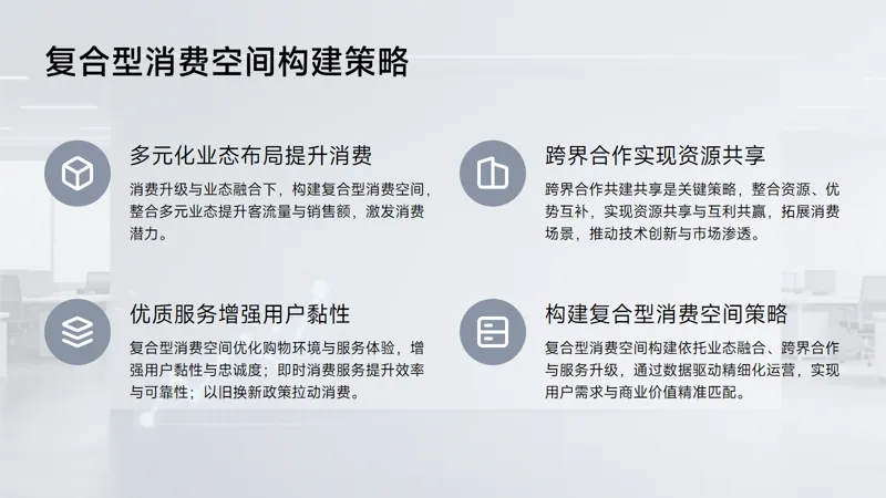 在消费升级与业态融合的背景下,构建复合型消费空间已成为提升消费体验与商业效率的重要路径。通过多元化业态布局、跨界合作共建共享以及优质服务提升竞争力,消费空间正逐步实现从单一功能向综合场景的转型。