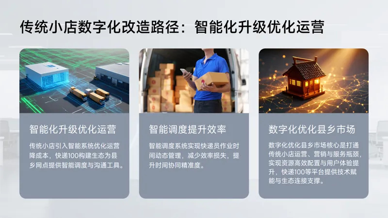 县乡市场作为快递物流网络的重要延伸区域,其供给优化需聚焦于传统小店的数字化改造与升级。当前,县乡市场的小型零售网点普遍面临运营效率低、服务能力弱、数字化水平不足等问题,亟需通过系统化改造提升其市场竞争力与生存能力。