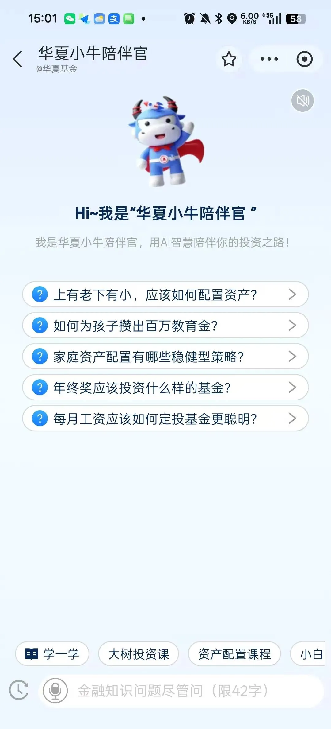 该体系基于50节体系化专业课程,深度融合大语言模型、个性化推荐算法与情感计算技术等,在支付宝上训练了“华夏基金机智小牛智能体”,不仅涵盖了视频、音频、图文等多载体的内容系统,还能通过对话的方式,为投资者在线提供投教陪伴与投资指导。