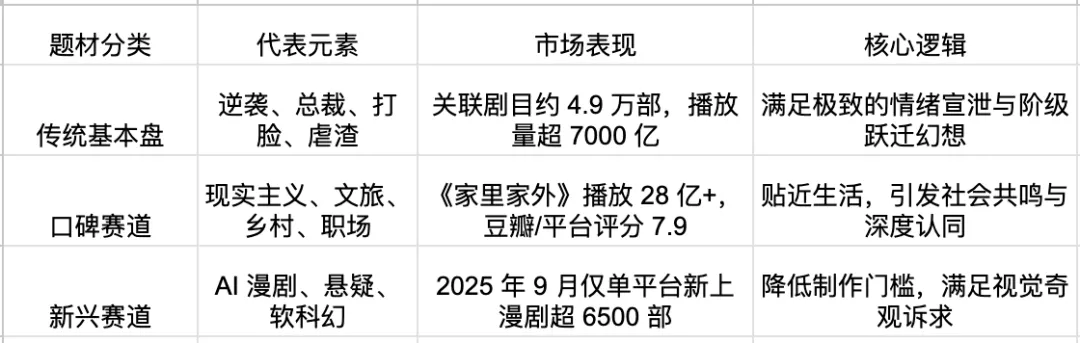 行业将借鉴长剧叙事逻辑,提升人物塑造与情节合理性,向“强情节+真情感”方向进化。《家里家外》7.9分口碑登顶标志着用户对深度内容的渴求,平台也开始扶持品质内容。从“爽感快消品”向“品质内容”转型,是行业发展的必然趋势。当市场从增量竞争转向存量竞争时,内容质量将成为决定成败的关键因素。