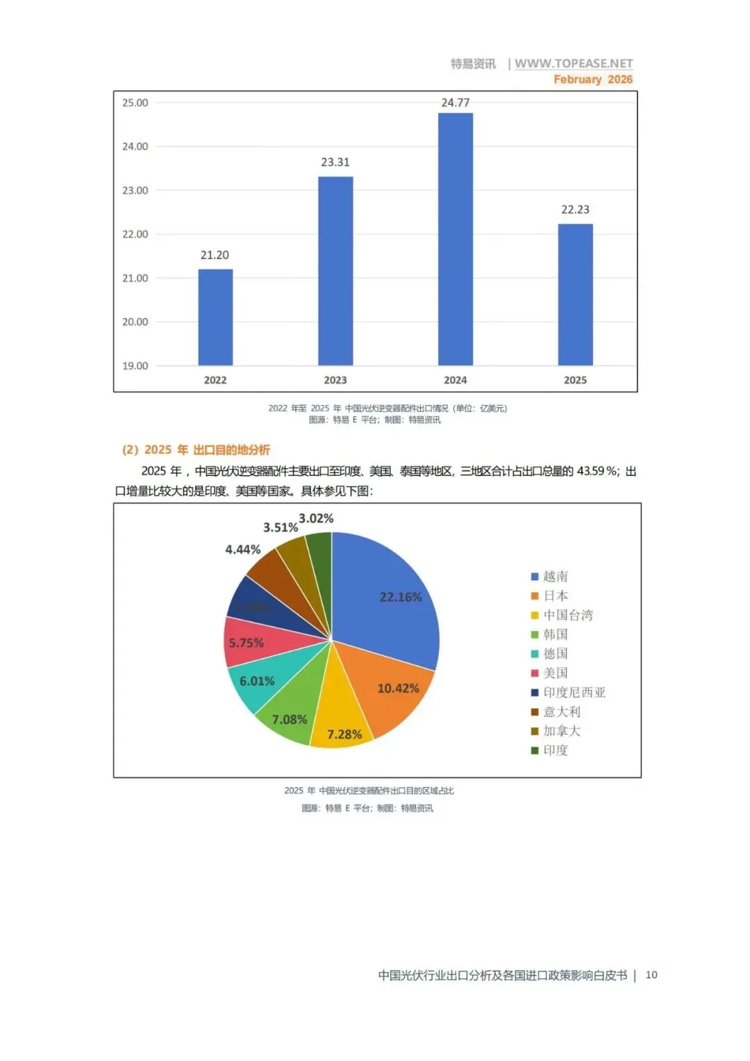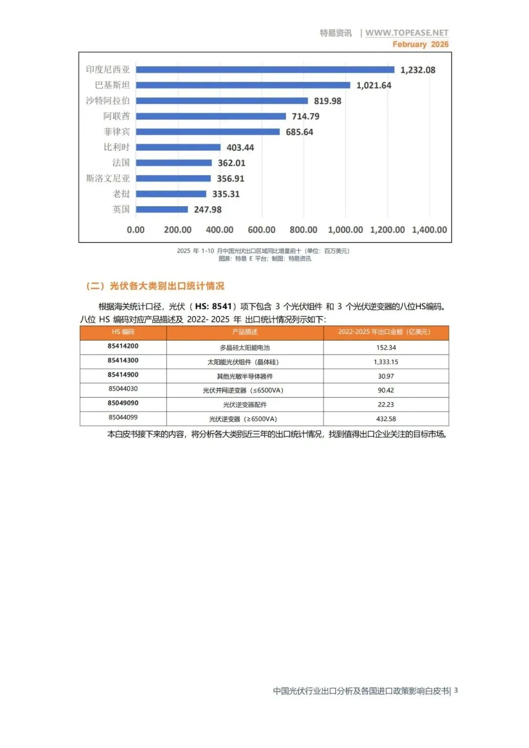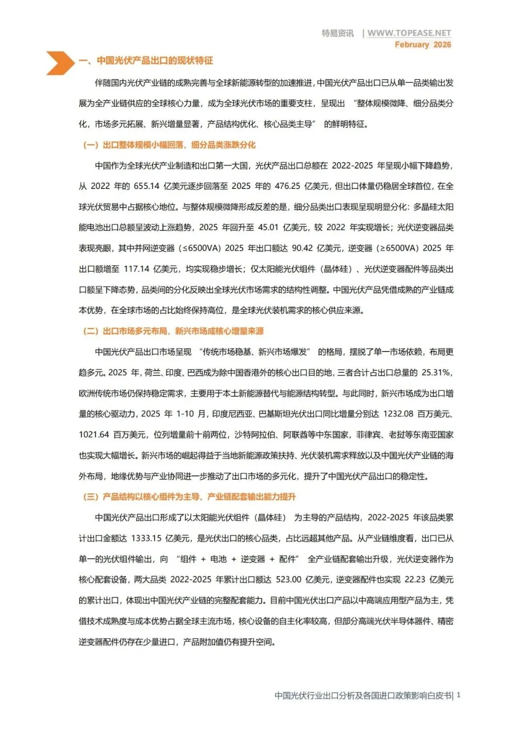本报告从整体规模、细分品类、市场格局到政策解析,以34页全景架构呈现了中国光伏出口从「组件输出」向「全产业链配套」的跃迁路径。