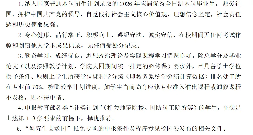 申报教育部各类“补偿计划”(相关师范院校、国防科工院所等)的学生,在满足上述第1-3条要求的前提下,择优推荐。