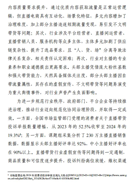 供应链品控压力:爆发式订单易引发质量问题,多主体参与导致责任界定复杂。 复合型人才稀缺:主播需兼顾内容、销售、合规等多重角色,系统培训体系缺位。 合规风险犹存:虚假宣传、价格误导、AI 技术滥用等问题仍需持续治理。