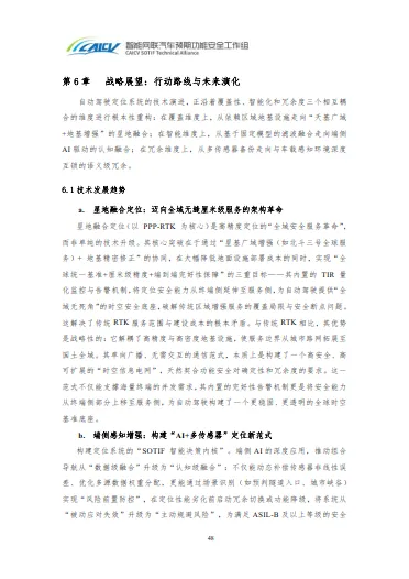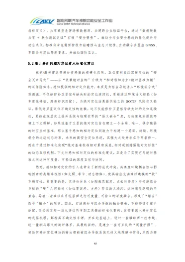 此外,白皮书构建标准体系,针对卫星绝对定位提出动态性能基准、虚实融合评价、失效机理图谱及协同治理建议;针对感知相对定位,倡导统一语义接口、特征-环境场景库、可复现流程、多维评估指标及因果知识库建设。战略展望部分指出,技术将向星地融合定位、端侧AI认知融合、低轨卫星补充覆盖、车载感知融合方向演进,产业需构建“主机厂-地图商-定位服务商-传感器厂商”安全责任共同体,通过技术契约、验证基座与失效治理协议实现协同。附录补充参考文献、回灌测试案例、单元测试规范及车载感知融合定位技术细节,为多源融合定位的测试与优化提供实操指引。