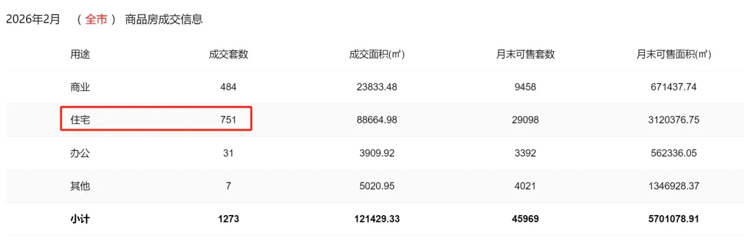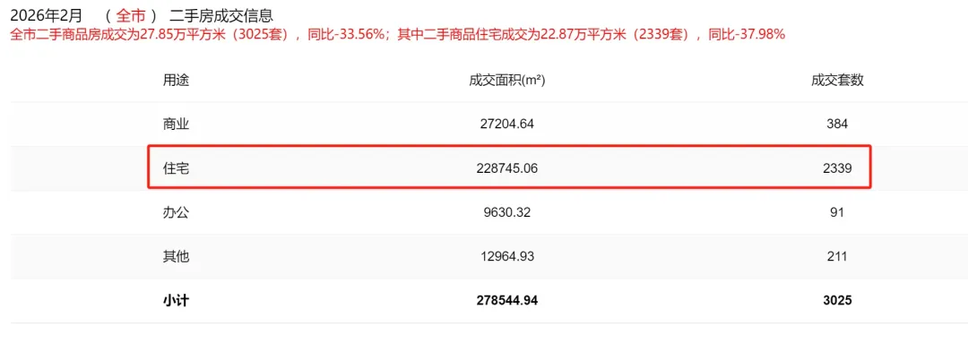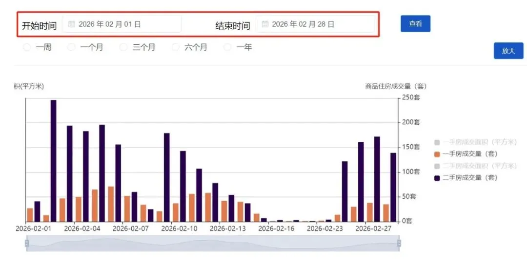2026年2月买卖房源实时成交共计:0套