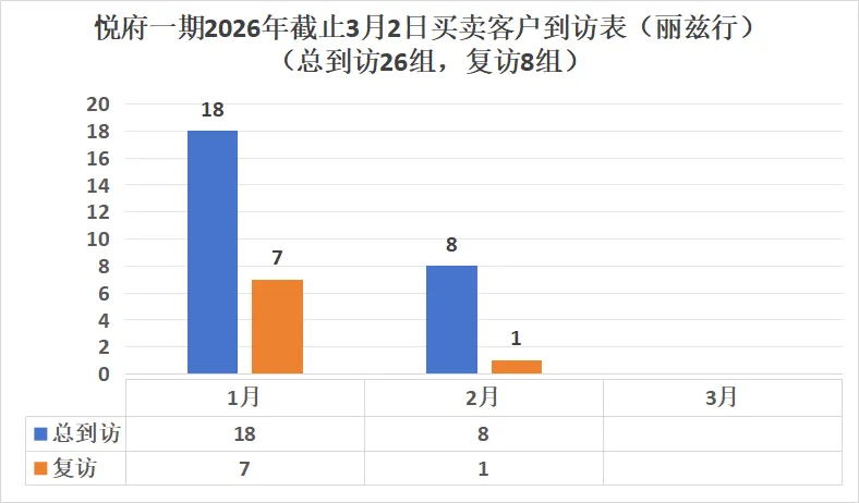 买卖客户共计:8组,复看客户共计:1组悦府一期2026年截止2月我司买卖累计带看客户情况:买卖客户共计:26组,复看客户共计:8组