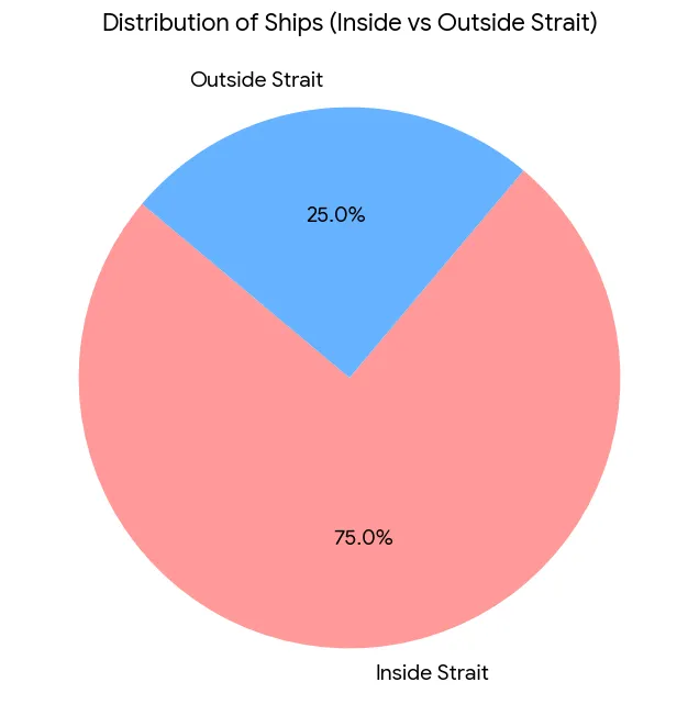 图表 1:海峡内外船舶分布饼状图 (Distribution of Ships: Inside vs Outside)(海峡内)占比高达 75%。