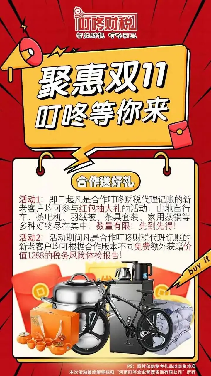 这是我们云帐房河南分公司合作的标杆客户-河南叮咚企业管理咨询有限公司,是一家在河南区域市场深耕很多年、服务的客户数量很大且客户服务口碑非常好的财税公司,这是他们在2025年做的双 11 的借助合规报告做的促销活动,而且取得了非常好的口碑和效果!