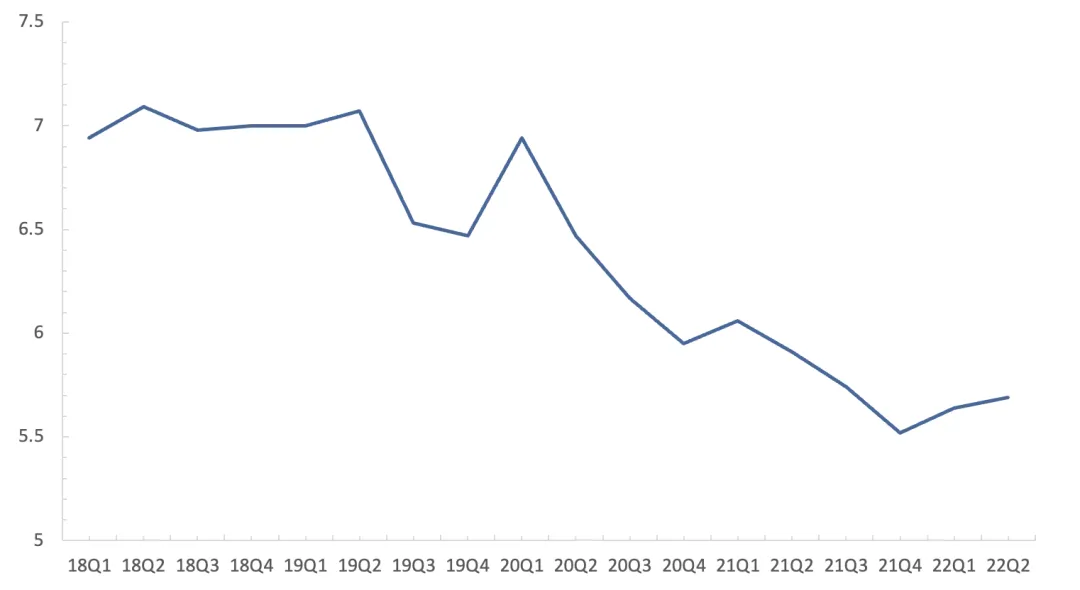 收入结构方面,腾讯的收入主要来自增值服务、网络广告、金融科技及企业服务这三大业务。其中,以游戏、视频直播、数字内容订阅等为核心内容的增值服务业务始终是腾讯的收入支柱,该业务在2022Q2实现收入717亿元,收入占比录得53%。从趋势上看,监管、疫情、宏观经济等因素对腾讯各业务都产生了不同程度的负面影响。增值服务、网络广告的收入在报告期内同比下降;金融科技及企业服务收入虽同比上升,然而同比增速较上季度放缓。总的来看,腾讯的收入结构在近年来总体保持稳定,各个业务的收入占比只发生了细微的调整。