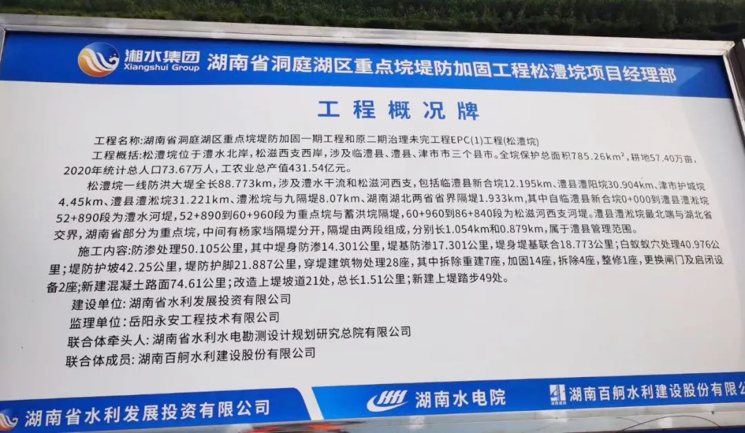 根据保护对象的重要程度,此次在11个重点垸中选择松澧、安造、沅澧、长春、烂泥湖、华容护城6个重点垸堤行进行全面达标加固治理,工程工期45个月,总投资85亿元。